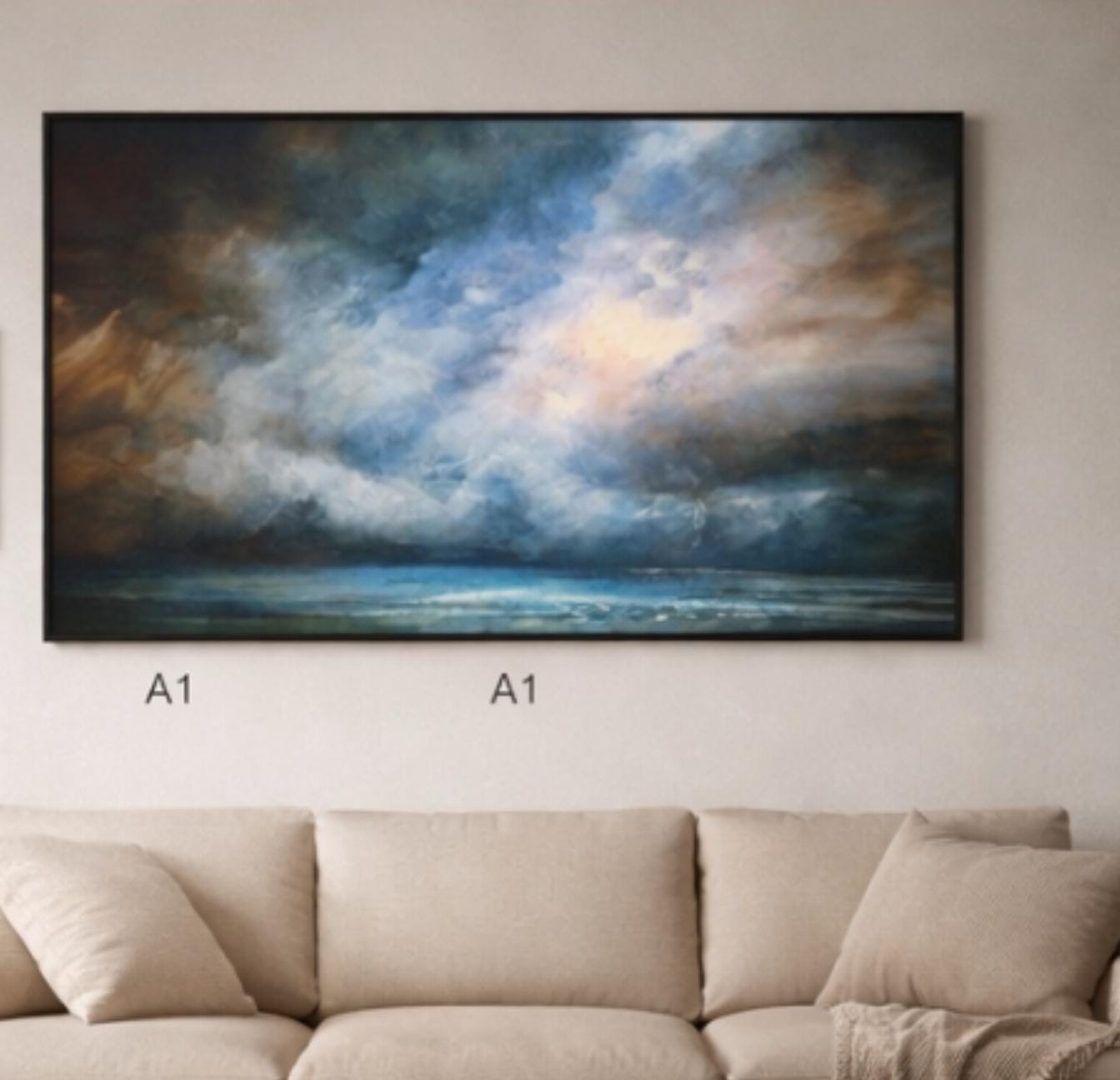 Seascape with clouds clearing after the storm light radiating through sunlight appearing over settling waters