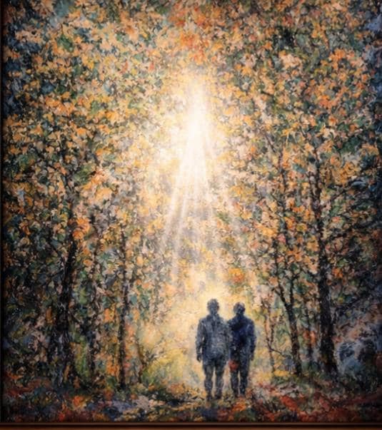 Impasto woodland scene light colour texture image
