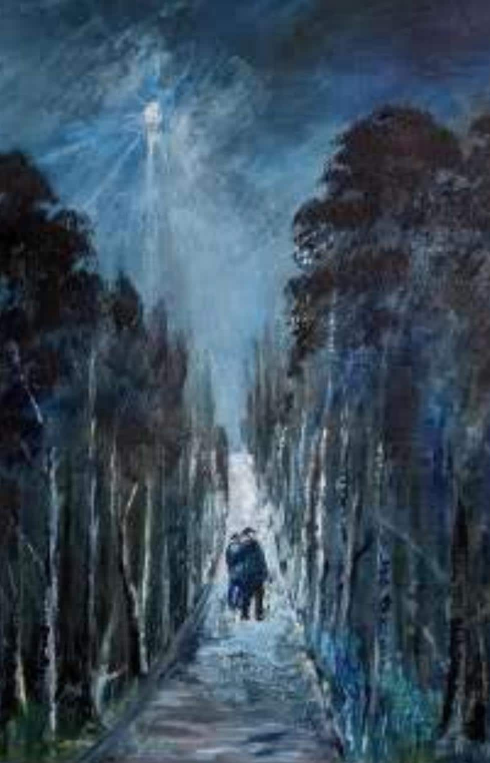 A midnight walk in the moonlight surrounded by tall trees as we used to do !