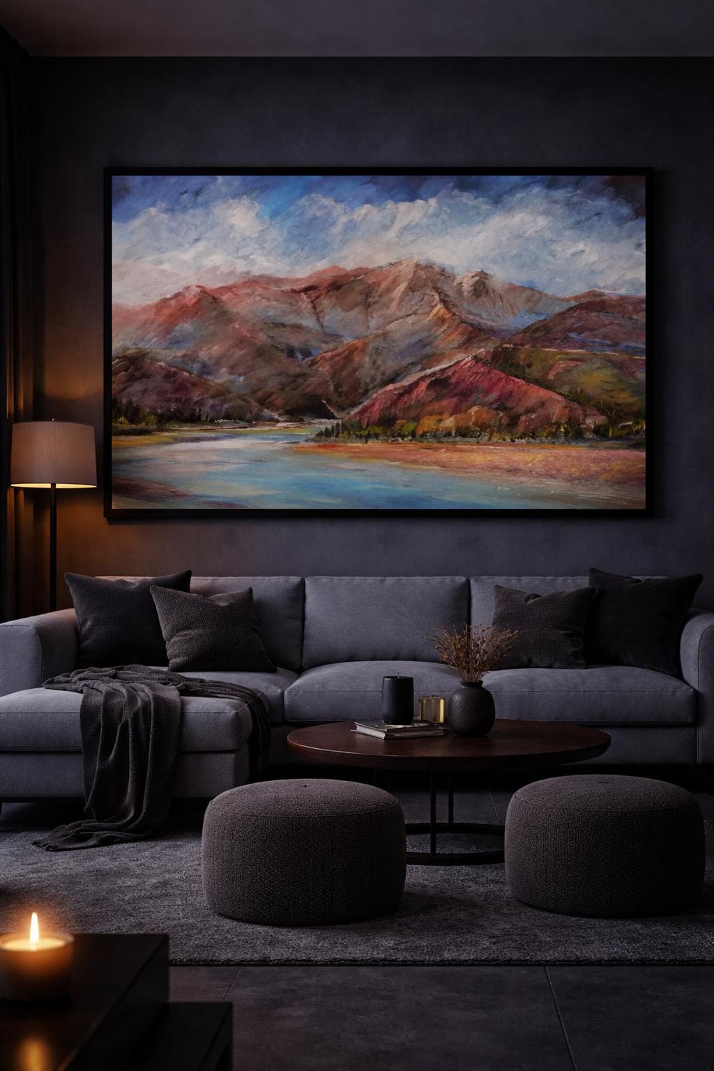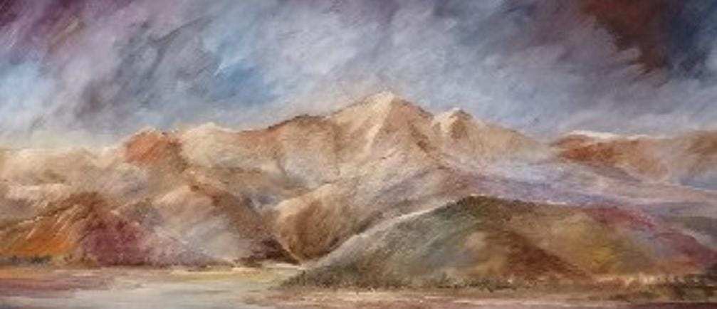 Mountain scene fast flowing River opening out on to the plain with clouds gathering over the mountains creating a misty start to the day
